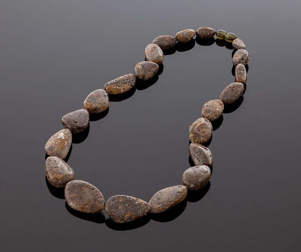 Black amber necklace is handmade of natural color amber beads. Pleasant and very beautiful Baltic amber necklace is radiant with energy and harmony to those who wear it. The unique and amazing property of natural amber is that it offers a natural relief of pain. Anti-inflammatory properties make it ideal natural homeopathic product for adults. There is a knot between each amber bead