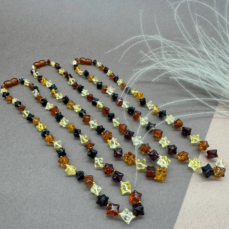 Massage multicolored amber necklace. Due to the unique, angular shapes of amber details, these beads provide a gentle massage and a sense of comfort.