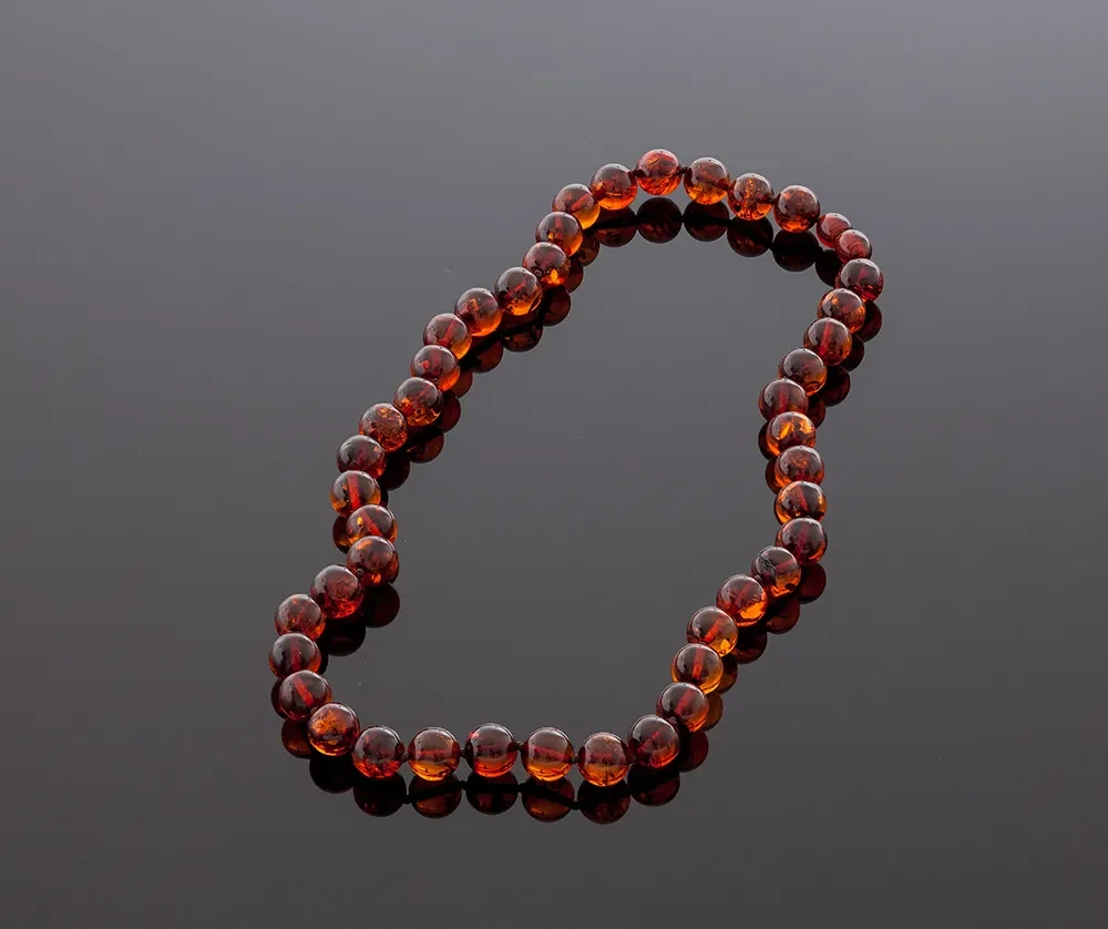 Luxury amber necklace is made of round shape amber beads. Cognac amber beads are made from natural high quality Baltic amber. Carefully polished and softly round Baltic amber beads lay comfortably against the skin. This allows maximum skin contact and gives added comfort to you. These wonderful cognac amber beads containing solar energy and the sunrise light manifest the valuable and important properties of this organic mineral.The exclusive design is suitable for different styles. There is a knot between each amber bead.