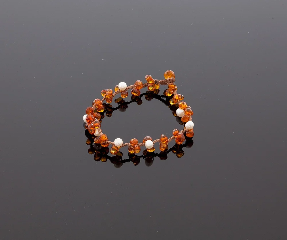 Rankomis kruopščiai pinta deimantinio šlifavimo gintaro apyrankė su natūraliais perlais. Konjako spalvos gintarėliai yra tobulai surikiuoti ir apipinti. Kiekviena nušlifuota it deimantas detalė suteikia Damai prabangos jausmą. Patogi, lengva ir labai puošni Baltijos gintaro apyrankė, kuri spinduliuoja energija ir ramybe tiems, kurie ją dėvi. Būtent šis gintaro apdirbimo būdas suteikia gintarui nuostabų spindėjimą. Todėl gintaro papuošalas atrodo unikaliai ir prabangiai. Puikiai dera su tos pačios rūšies gintaro vėriniu.